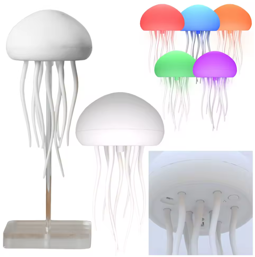 Transforma cualquier espacio con Medusa RGB, una lámpara única que simula el movimiento hipnótico de una medusa flotando gracias a sus luces LED multicolor. Su efecto visual envolvente crea una atmósfera relajante y creativa, ideal para escritorios, veladores o rincones especiales.